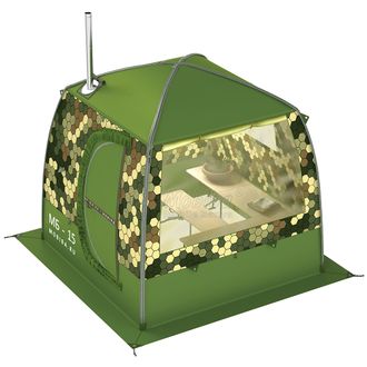 Мобильная баня «МБ-15 Аквариум 1 » с одним большим окном (шторка в комплекте). Хороша, как мобильная баня на даче, баня на пляже, баня в походе на природе, палатка для зимней рыбалки (с печью «Согра»). Для компании из 4-5 человек.
